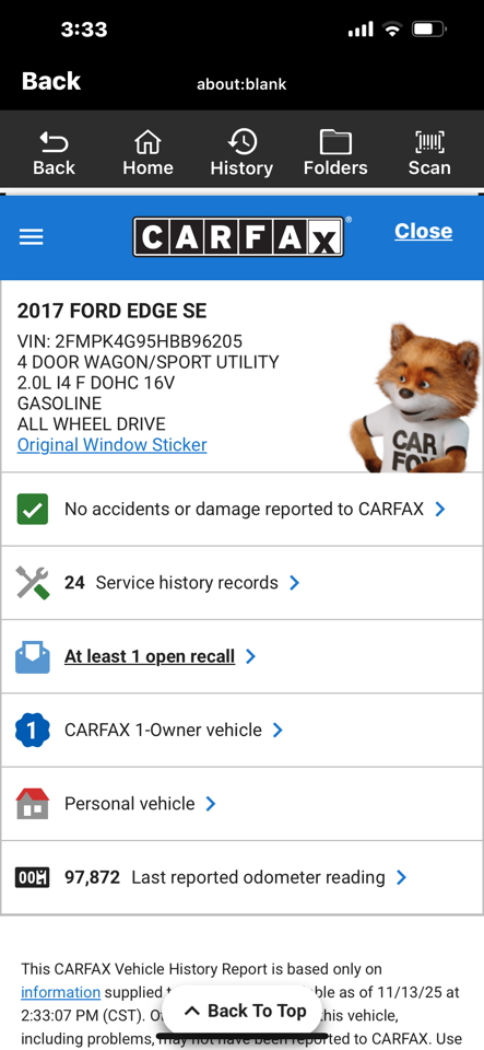 Vehicle Inquiry for 2017 Ford Edge SE AWD